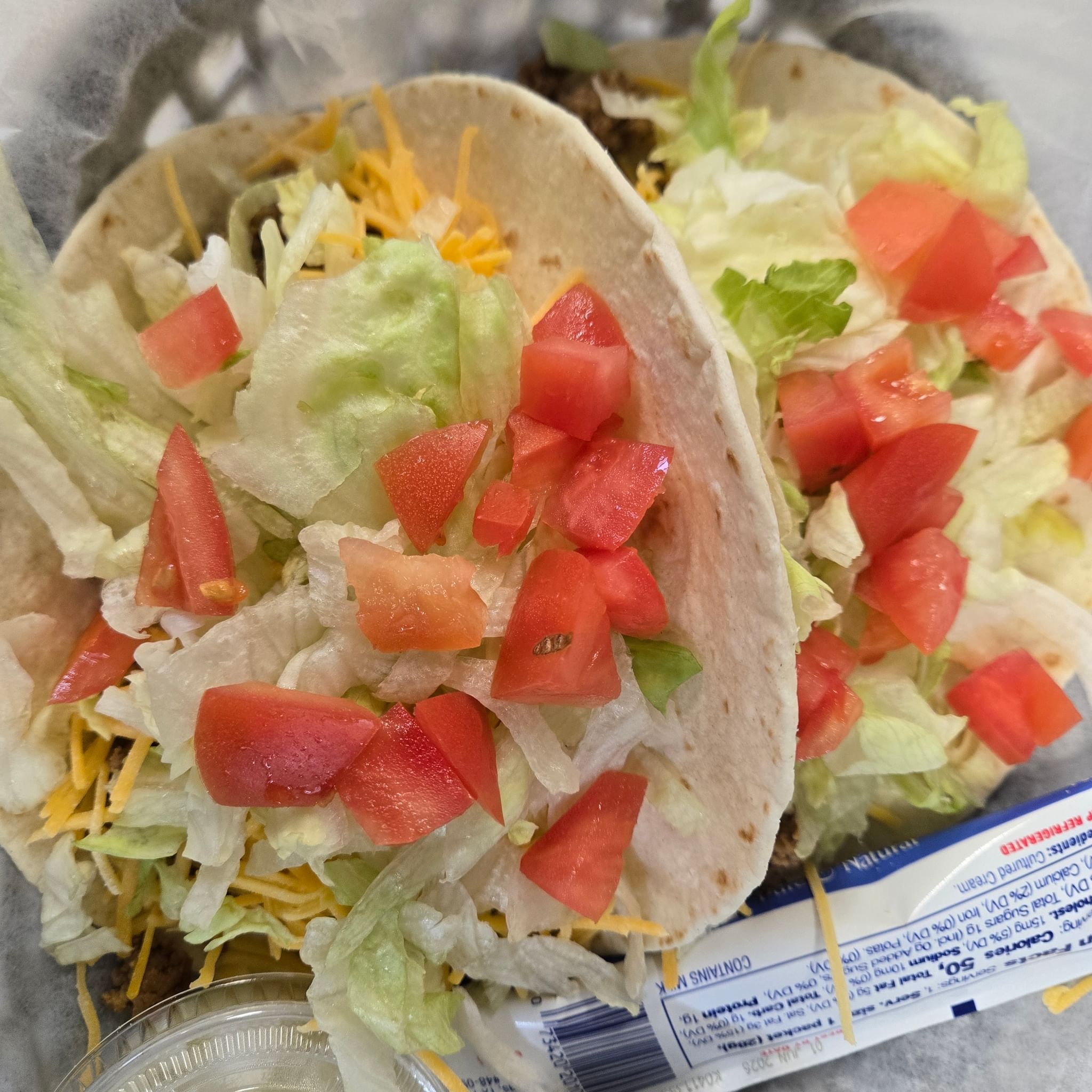 Bed of spring mix greens, cheddar cheese, and sliced tomato.