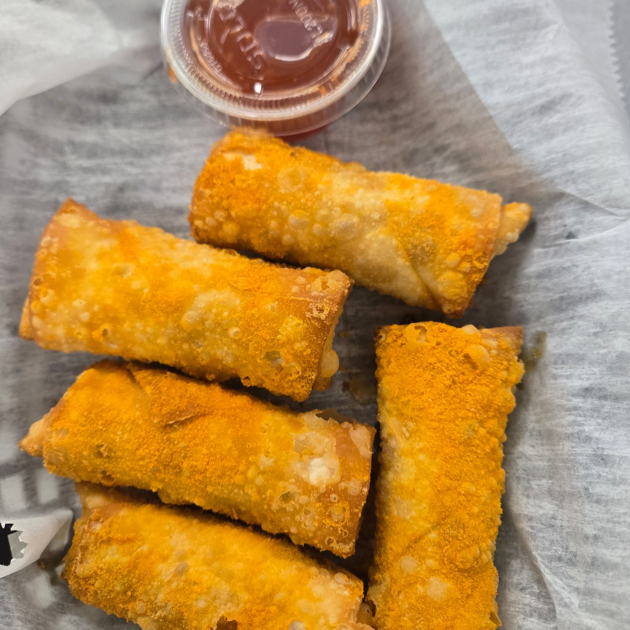 (5) Crispy wonton filled with a mix of brisket, cream cheese, and Cheddar cheese. Served with BBQ dust and sweet chili dipping sauce.